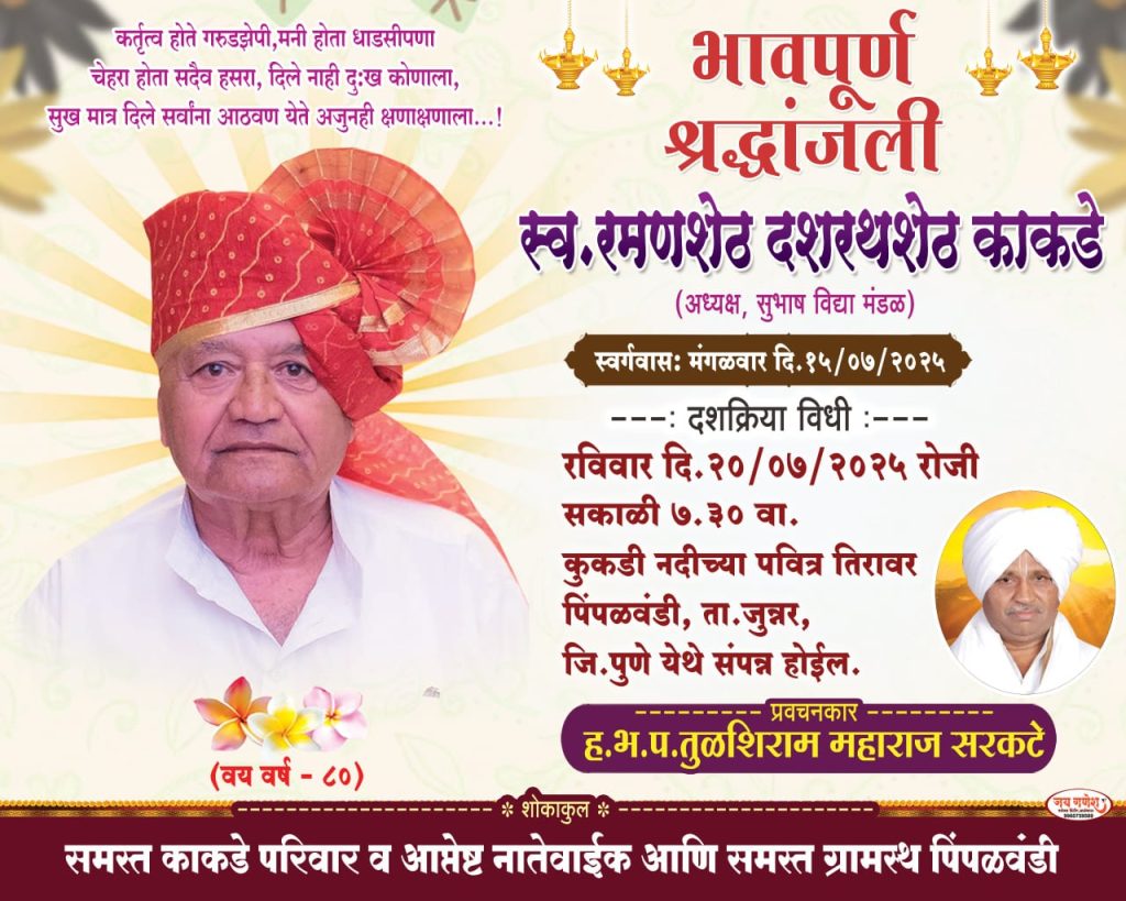 निधनवार्ता – रमणशेठ दशरथशेठ काकडे